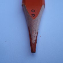 The oversize fluorescent pencils are made usable again – and the carpenter’s pencil is pointed. Of course, this point is like that of a regular pencil, and discards the lead’s rectangular shape. Who wants carpenter pencils pointed this way? I suppose it beats nothing.